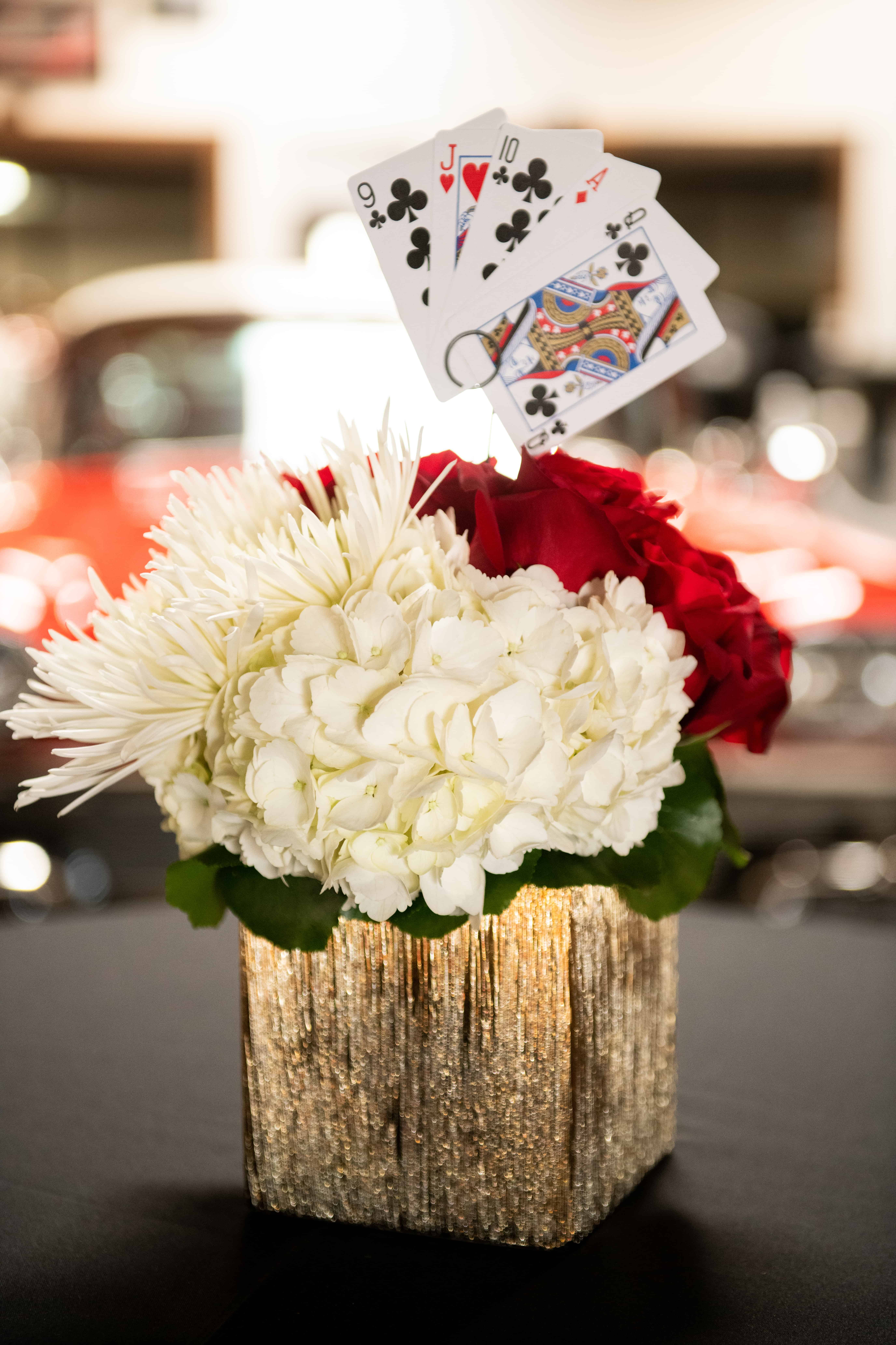 Brendan’s casino night was a night to remember. It was held at Veloce Motorcars The Vault in San Diego. This unique venue with it’s exotic, classic car storage offered a perfect backdrop for our theme. We decorated the room with custom wooden dice, a giant “B” marquee letter in honor of Brendan, a lounge area for the kids with custom pillows and beautiful florals.
