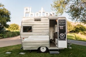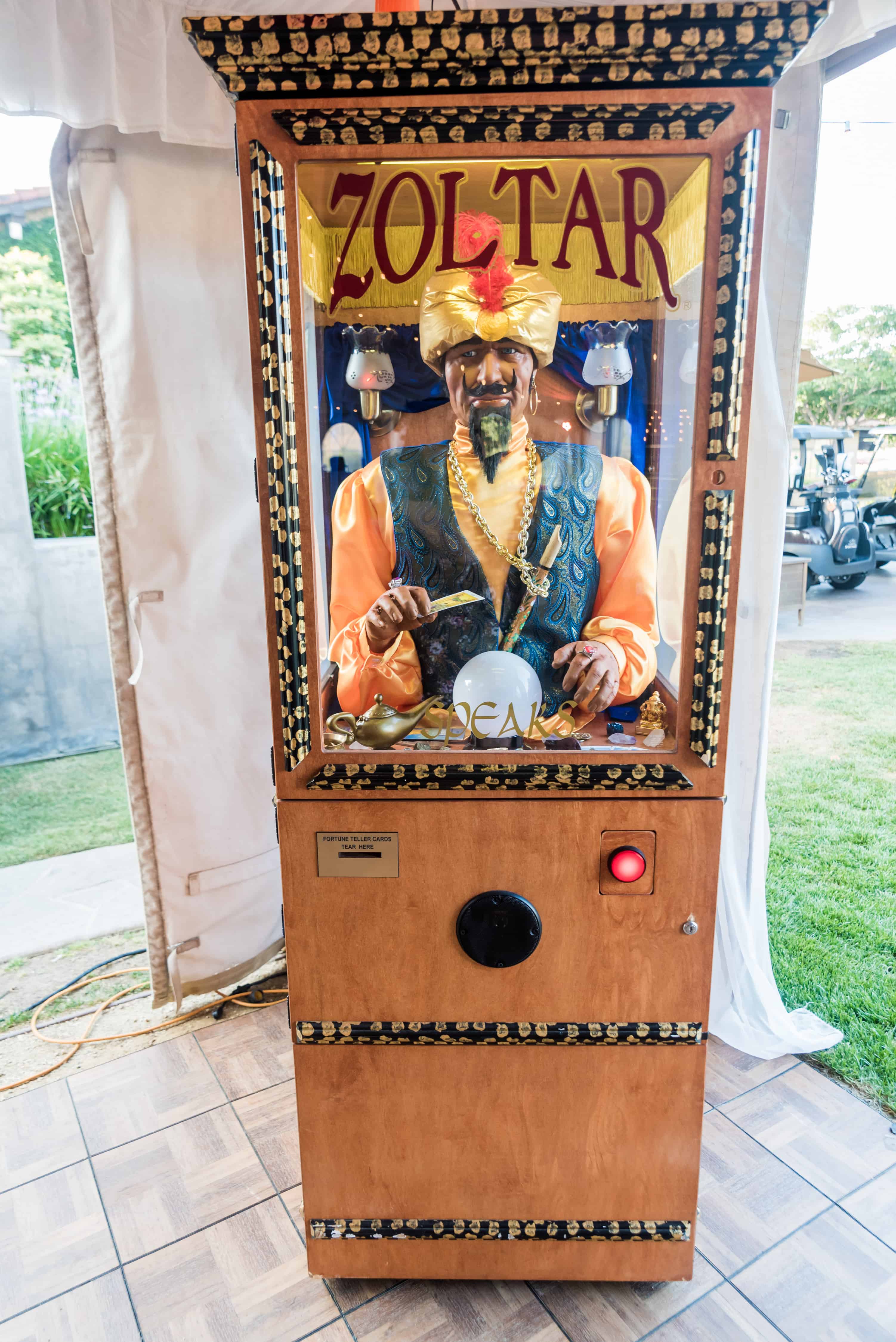 It wouldn’t be a carnival without a large selection of treats. Ours included a cotton candy cart, donut station, vintage popcorn stand and a brightly colored candy bar. Other fun activities included drawings by a professional caricature artist, fortune telling from Zoltar and trying their luck at the oversized LED Plinko game. One of the highlights of the evening was stepping inside the old school camper /photo booth that was parked right outside the tent.